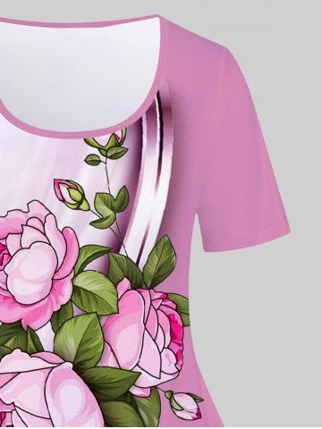 Plus Size Colorblock Floral Print Tee - Pink - L | Us 12