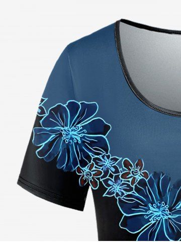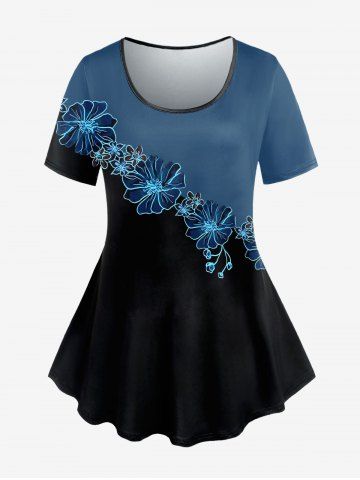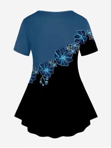 G*****e5Plus Size Colorblock Flower Print Short Sleeves T-shirtColor: BLUE Size: 2XI was pleasantly surprised by the fit. It light and airy. Looking forward to wearing