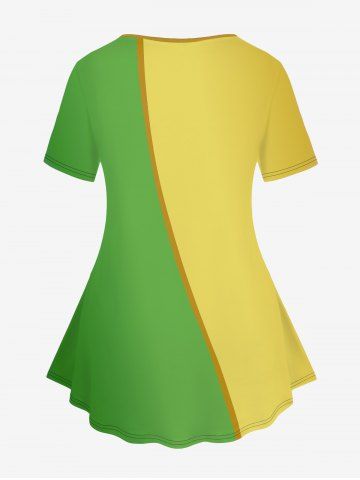 Plus Size Colorblock Flower Print T-shirt - Green - S