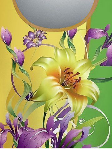 Plus Size Colorblock Flower Print T-shirt - Green - 6x