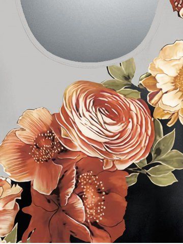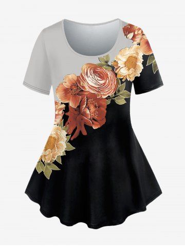 Plus Size Colorblock Flower Print T-shirt - Black - S
