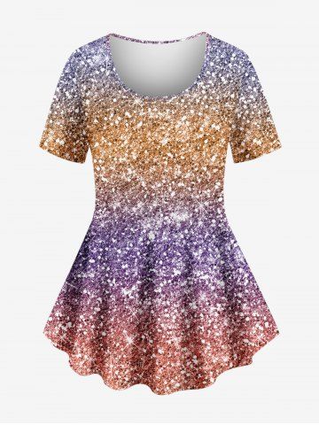 Plus Size Colorblock Glitter Sparkling Sequin 3D Print T-shirt - Multi-a - 2x