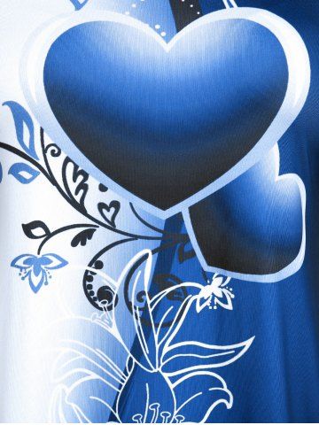 Plus Size Colorblock Heart Floral Print Tee - Blue - 5x | Us 30-32