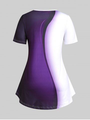 Plus Size Colorblock Heart Floral Print Tee - Concord - S | Us 8