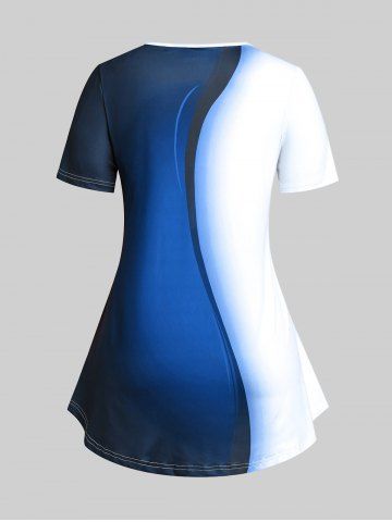 Plus Size Colorblock Heart Floral Print Tee - Blue - S | Us 8