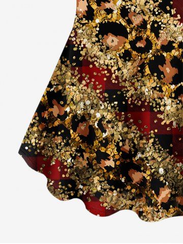 Plus Size Colorblock Leopard Glitter Sparkling Sequin 3D Print T-shirt - Coffee - L