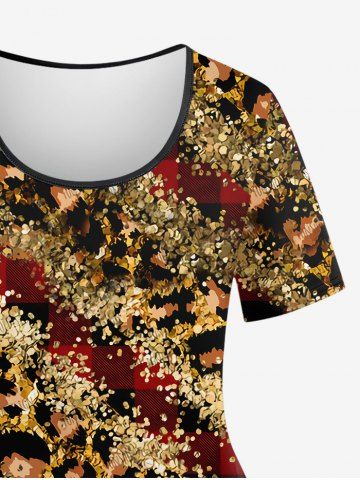 Plus Size Colorblock Leopard Glitter Sparkling Sequin 3D Print T-shirt - Coffee - 6x