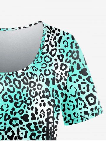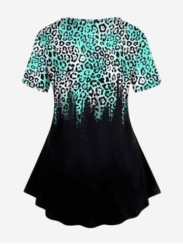 Plus Size Colorblock Leopard Print Short Sleeve T-shirt - Green - 1x | Us 14-16