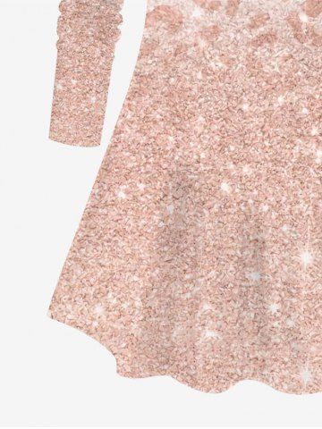 Plus Size Colorblock Leopard Sparkling Sequin Glitter 3D Print Long Sleeve T-shirt - Light Pink - 1x