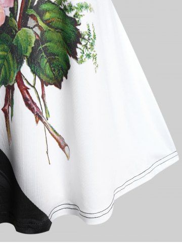 Plus Size Colorblock Rose Print T-shirt - Black - M | Us 10