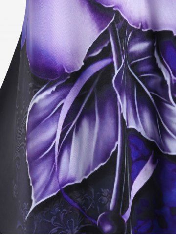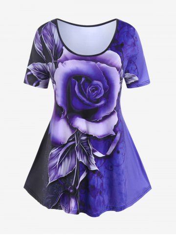 Plus Size Colorblock Rose Print Tee - Purple - L | Us 12