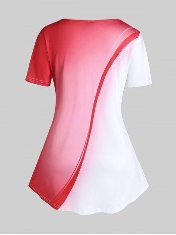 Plus Size Colorblock Rose Print Tee - Red - 2x | Us 18-20