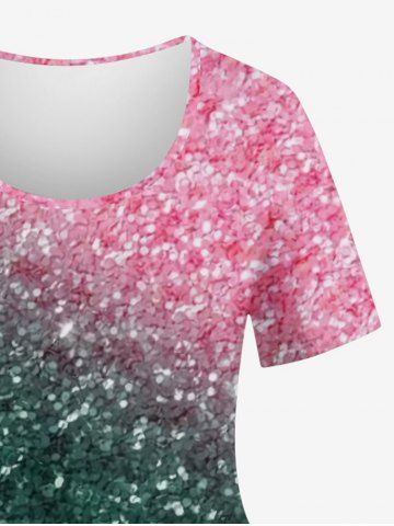 Plus Size Colorblock Sparkling Sequin Glitter 3D Print T-shirt - Light Pink - M