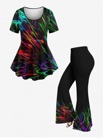 Plus Size Colorful Fire Flame Print T-shirt - Black - L