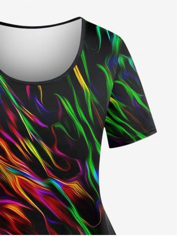 Plus Size Colorful Fire Flame Print T-shirt - Black - 1x