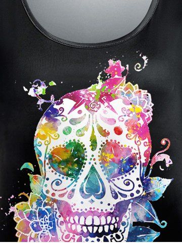 Plus Size Colorful Flower Heart Star Skull Paint Drop Print Short Sleeves T-shirt - Black - 3x