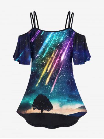 k*****h5Plus Size Colorful Glitter Meteor Shower Ombre Galaxy Tree Print Hawaii Cold Shoulder Cami T-shirtColor: BLACK Size: 1XVery comfortable and attractive the material drapes beautifully in the body perfect for the summer