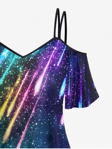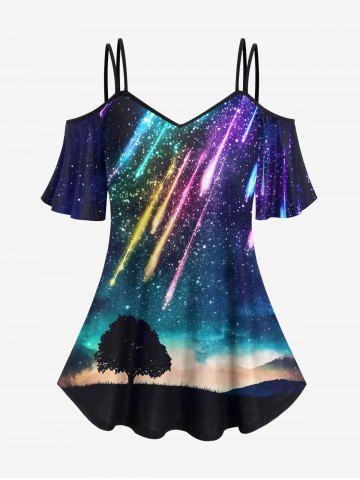k*****h5Plus Size Colorful Glitter Meteor Shower Ombre Galaxy Tree Print Hawaii Cold Shoulder Cami T-shirtColor: BLACK Size: 1XVery comfortable and attractive the material drapes beautifully in the body perfect for the summer