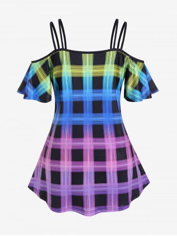 d*****y4Plus Size Colorful Plaid Cold Shoulder TeeColor: MULTI Size: 3X | US 22-24beautiful top & of good quality. maybe on the large end of true to size, but true to size nonetheless. I do wish the straps were adjustable, as I'm smaller up top than I am on the bottom. Slightly revealing & sexy as well. the colors are very bright and I love it!