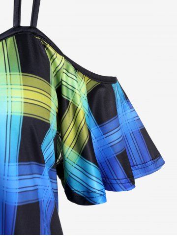 Plus Size Colorful Plaid Cold Shoulder Tee - Multi - 4x | Us 26-28