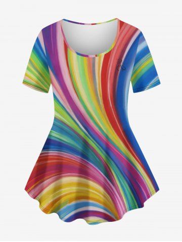 k*****m4Plus Size Colorful Rainbow Swirls Colorblock Glitter 3D Print T-shirtColor: MULTI-A Size: 6XGreat fit, I like the material. True to size, and bright colors!