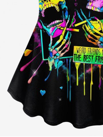 Plus Size Colorful Skull Skeleton Heart Painting Splatter Print Women T-shirt - Black - 3x