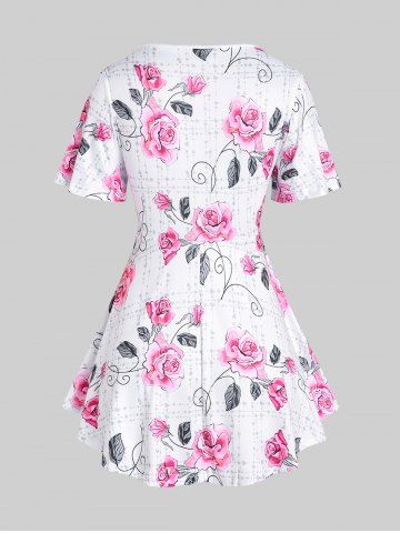 A*****a4Plus Size Crisscross Short Sleeves Plunging Floral TeeColor: LIGHT PINK Size: 5X | US 30-32Beautiful fabric and very soft and comfortable. Fits perfectly. I love it.