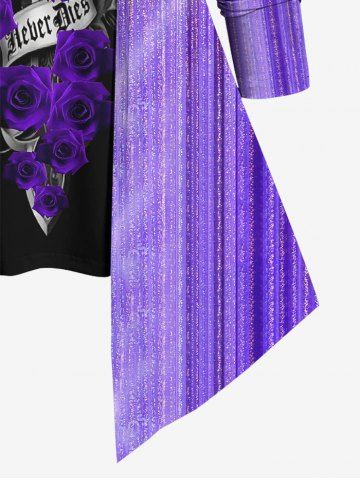 Plus Size Cross Rose Ombre Glitter Print 2 In 1 T-shirt - Purple - Xs