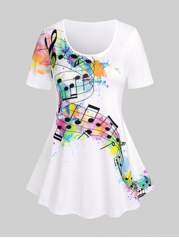 Plus Size & Curve Basic Paint Splatter Musical Notes Tee - White - M | Us 10