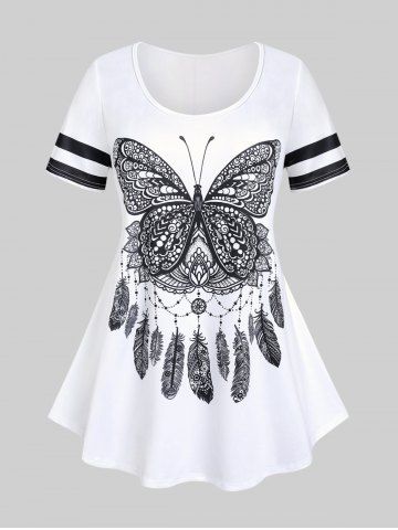 B*****s5Color: WHITE Size: 3X | US 22-24I love love love this top!!! The butterfly screen print with the appearance of being a dream catcher, just beautiful! The material is soft and comfortable, perfect fit, shipped fast and packaged nicely. High quality design and made very well!