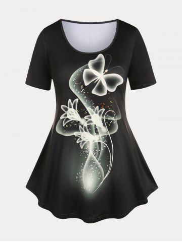 c*****a5Plus Size & Curve Butterfly Flower Print Basic TeeColor: BLACK Size: M | US 10Perfect fit and material with the added bonus of the butterfly graphic