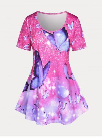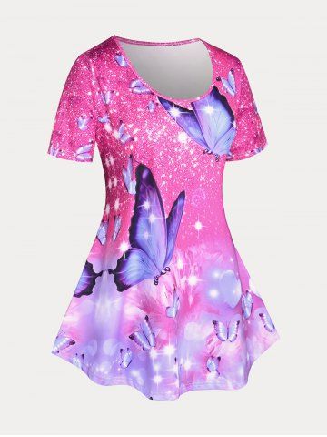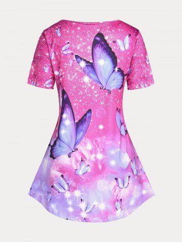 C*****e5Color: LIGHT PINK Size: 1X | US 14-16i love the bright colors and butterflies of this sit. the shirt fits well and the material is nice and the length is good i get compliments on it a lot