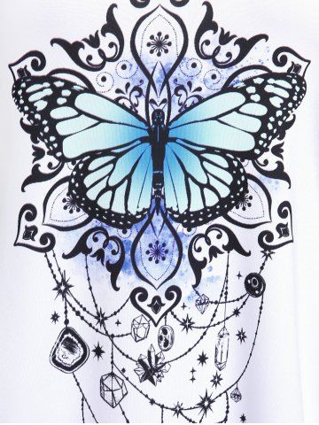 Plus Size & Curve Butterfly Stripes Colorblock Short Sleeves Tee - White - M | Us 10