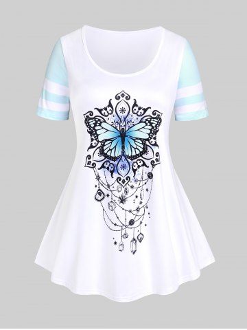 Plus Size & Curve Butterfly Stripes Colorblock Short Sleeves Tee - White - 1x | Us 14-16
