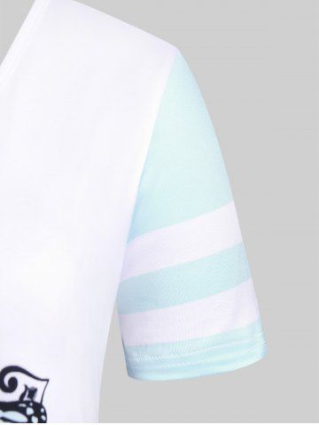 Plus Size & Curve Butterfly Stripes Colorblock Short Sleeves Tee - White - 3x | Us 22-24