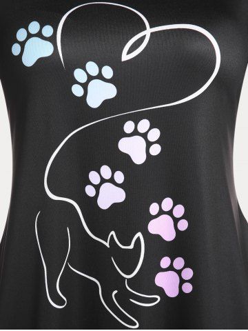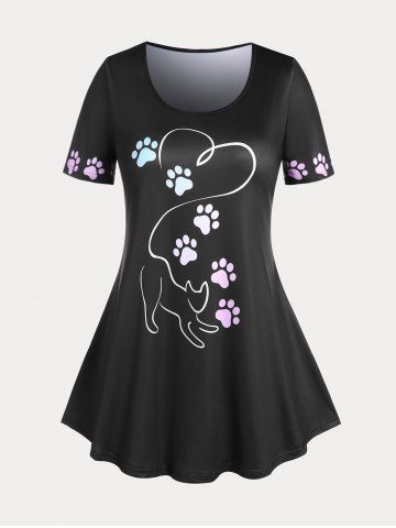 Plus Size & Curve Cat Footprints Graphic Tee - Black - L | Us 12