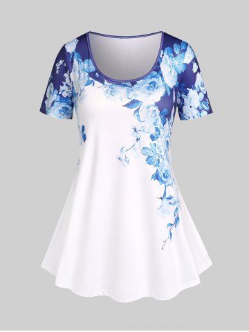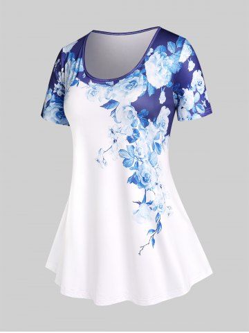 B*****s5Plus Size & Curve Floral Print T-shirtColor: MULTI Size: 3X | US 22-24Beautiful screen print of flowers on white with a dark blue for the back of the shirt, so stylish!!! The material is soft and comfortable, perfect fit, shipped fast and packaged nicely. High quality design and made very well!
