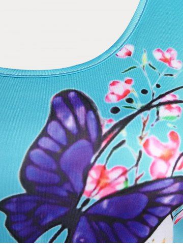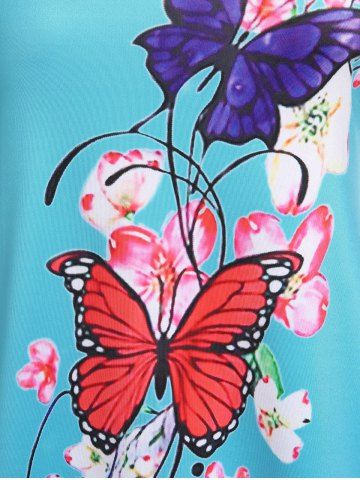 Plus Size & Curve Flower Butterfly Print Flared Tee - Blue - 2x | Us 18-20