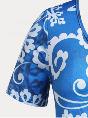 Plus Size&Curve Flower Paisley Print Flared Tee - Blue - M | Us 10
