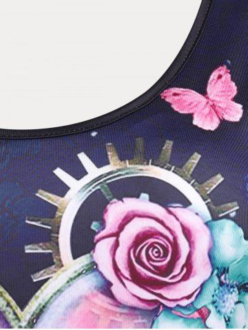 Plus Size & Curve Heart Rose Butterfly Print T Shirt - Deep Blue - 1x | Us 14-16
