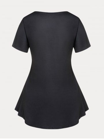 D*****n5Curve Rose Print Graphic Tee and 3D Lace Up Jean Print Cropped Leggings Plus Size Summer OutfitColor: BLACKI love this it fits well. love the material. love it