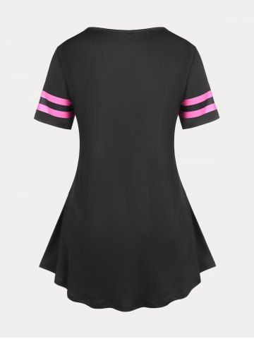 s*****s5Plus Size & Curve Rhinestone Butterfly Print TeeColor: BLACK Size: 3X | US 22-24this one is my favorite I absolutely love this one it fits perfectly the only thing I regret is not ordering the pants or leggings that goes with it, these are the photos that I took when I was in different rooms when I took the photos one photo turned out to look red in color instead of pink like it is supposed to be I'm wondering if it's because of the lighting in the room not really sure but I think that looks great in red I think you should produce one of these in red in color this is also true to size