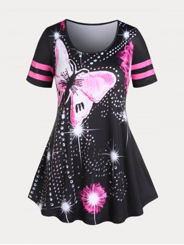 D*****m4Plus Size & Curve Rhinestone Butterfly Print TeeColor: BLACK Size: 5X | US 30-32Fantastic Shirt with vibrant colours. Nice to wear and cosy. Fits perfect. Absolutely recommended.