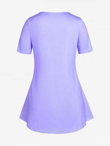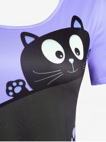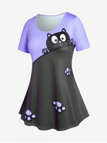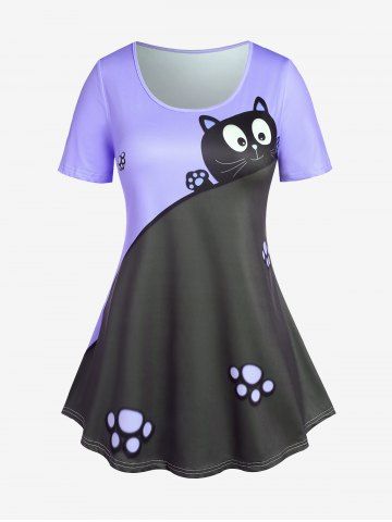 Plus Size & Curve Two Tone Cat Print Short Sleeves Tee - Light Purple - 2x | Us 18-20