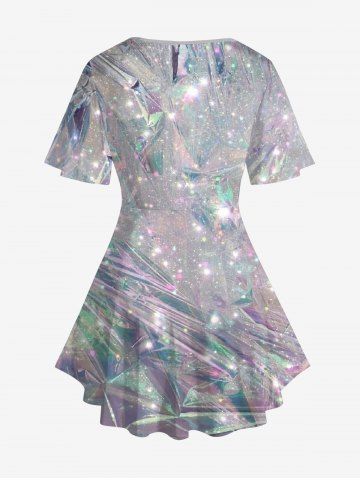 Graphic Tees > Plus Size Diamond Glitter Sparkling Sequin 3D Print Lattice Crisscross Flare Short Sleeve T-shirt