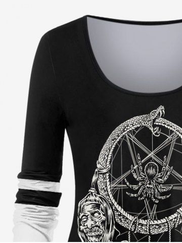 Plus Size Dreamcatcher Snake Spider Skeleton Print Halloween T-shirt - Black - 4x
