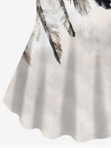 Plus Size Ethnic Feather Clock Tie Dye Print T-shirt - Light Gray - 5x