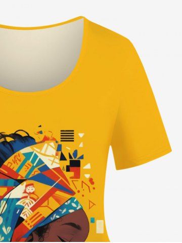 Plus Size Ethnic Lady Geometic Pattern Print T-shirt - Yellow - 1x