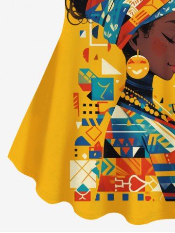 Plus Size Ethnic Lady Geometic Pattern Print T-shirt - Yellow - 6x