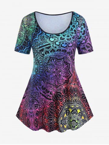 Plus Size Ethnic Printed Short Sleeves Tee - Multi-a - 5x | Us 30-32